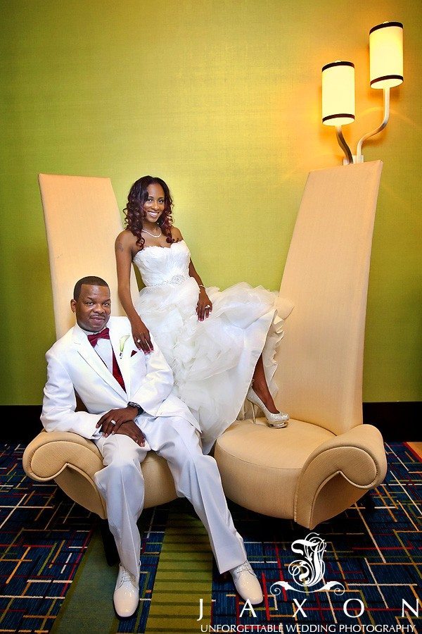 Angela was one of my favorite brides; she loved our photography and promised me her wedding was about the party. On that point she did not disappoint. Her wedding ceremony and reception was at hosted at the very modern chic Atlanta Airport Marriott Gateway Hotel and our photographers did a great job of capturing Angel and Victor’s vision for their day. Starting with her Gianmarco Lorenzi crystal pumps at the reception counter at the Airport Marriott to the numerous photographs around the hotel of the bride and groom, It was a blast to photograph this wedding. Here are some of my favorite photographs from their Marriott Gateway Wedding.