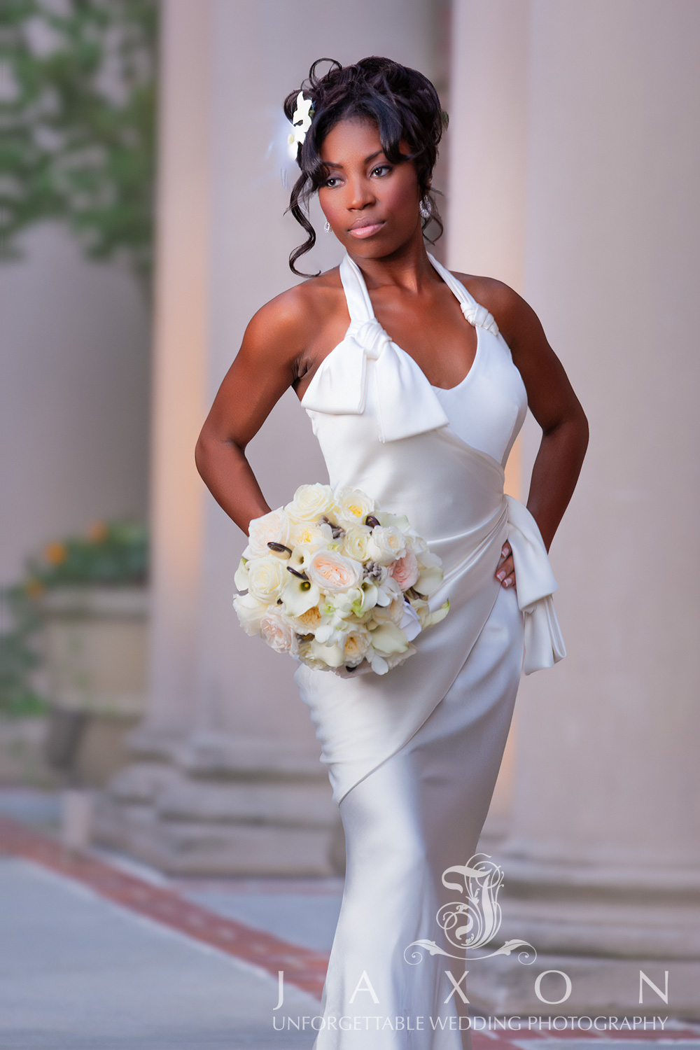 After the heartfelt ceremony, as guests enjoyed cocktails, our photographers whisked the newlyweds away for a photoshoot around the historic venue. The massive Corinthian columns and lush gardens provided a breathtaking backdrop for their romantic portraits. The images captured during this session highlight the couple’s love and the timeless beauty of the Biltmore Ballrooms.