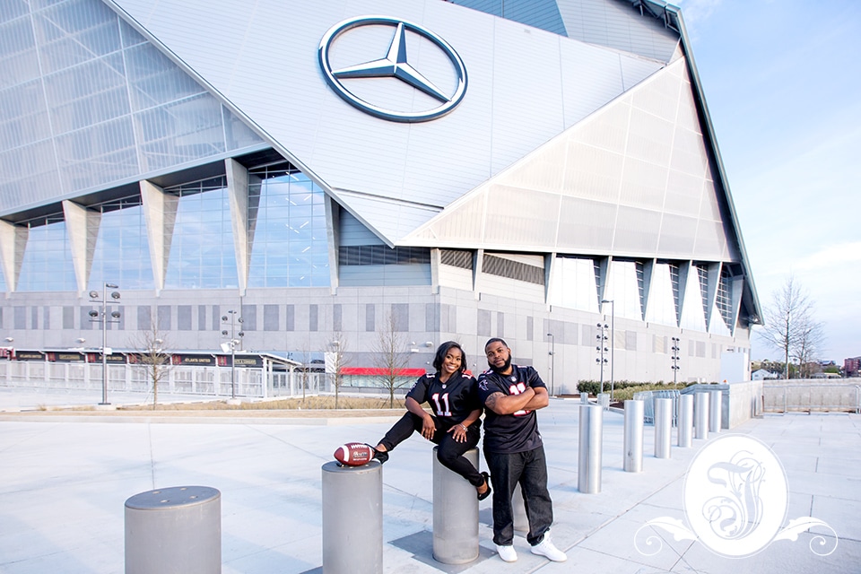 For these uber Atlanta Falcons fans, having their engagement session around the nesting place of the beloved team was non-negotiable. From our first consultation, they made sure I knew what big fans they were. So we put some thought into, and these photos are the fruits of our efforts.