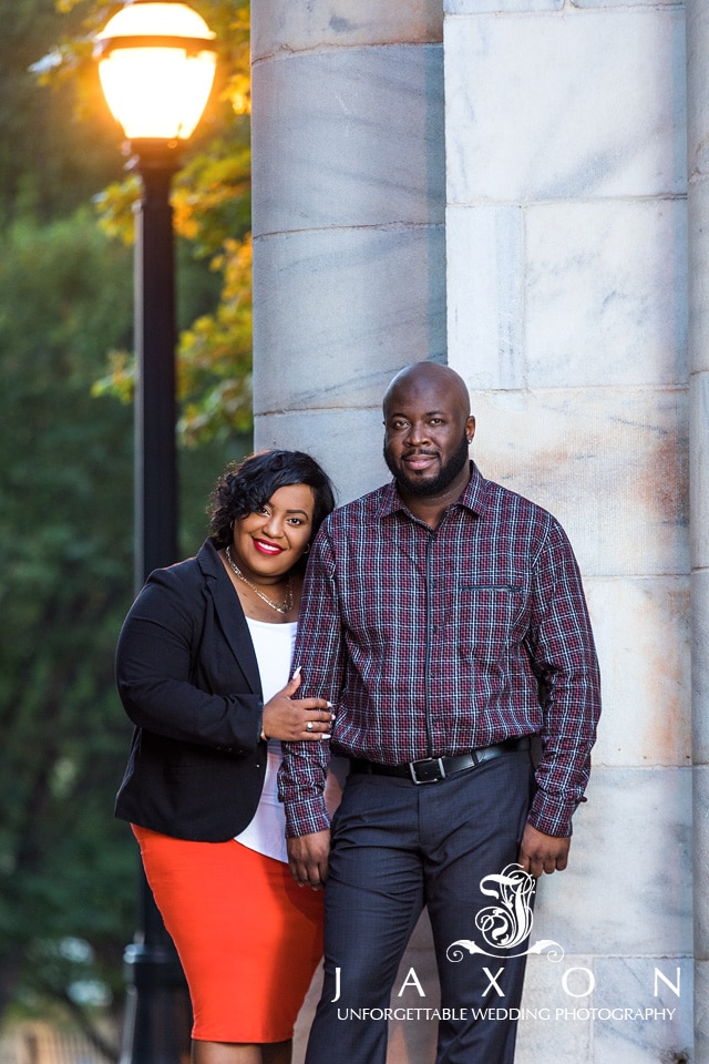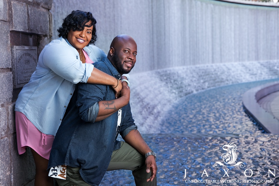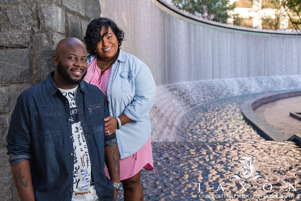 Congratulations to our lovely couple, we are honored and look forward to capturing their wedding day story. Later this year they will exchange wedding vows in Atlanta. Here are a few of our favorite images from their engagement session in Atlanta. The first part of their engagement photography session took place around water fountains at Woodruff Park downtown and at the Carnegie Education Pavilion also known as the Carnegie Monument in mid-town Atlanta.